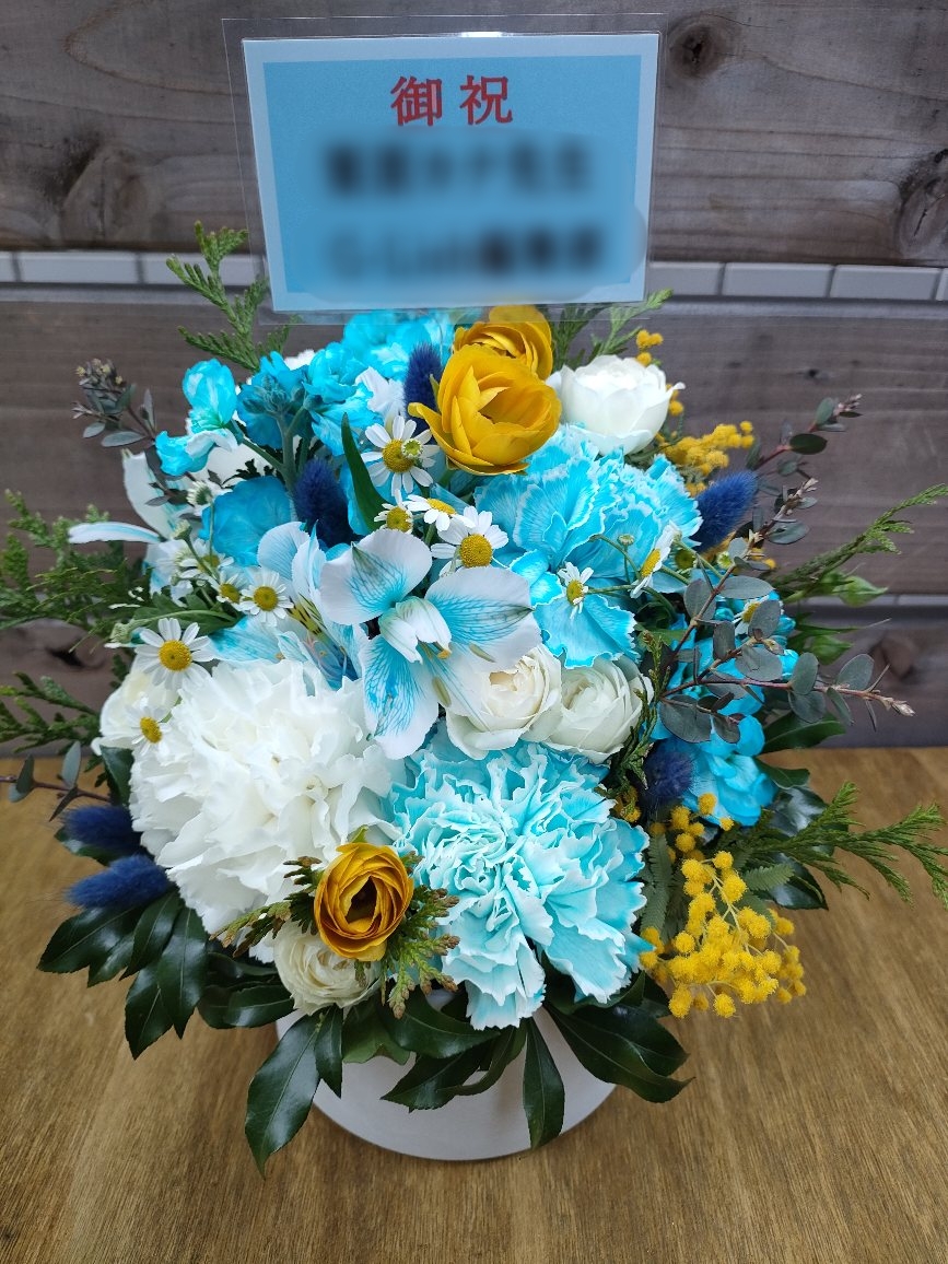 スペースの都合がありますので、ファンの方からのお花はアレンジメントやボックスフラワーを贈るのが一般的です。出版社やスポンサー企業からの御祝いはスタンド花の場合もございます。祝い花の受取の可否を確認することが大事です。初めての方、花を送ってみたかったけど迷っていた方など、お気軽にご相談ください。