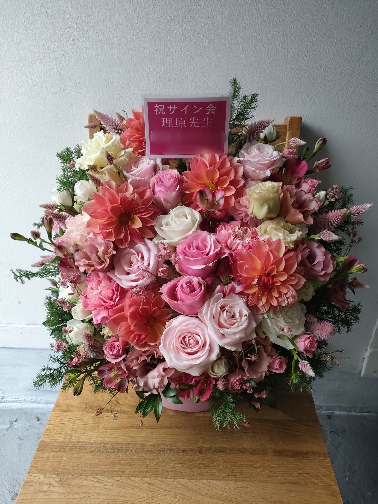 本、漫画などの出版記念にサイン会や個展が行われることがありますが、その際に御祝いの花をお届けしております。